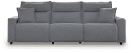 Details Includes 3 modular pieces: left-arm facing power recliner, armless chair and right-arm facing power recliner, "Left-arm" and "right-arm" describe the position of the arm when you face the piece, Versatile modular pieces fit together in a variety of configurations, One-touch power control with adjustable positions, Easy View™ adjustable headrest and zero-draw USB port, Zero-draw technology only consumes power when the USB receptacle is in use, Corner-blocked frame with metal reinforced seat, Attached back and seat cushions; high-quality foam cushions wrapped in poly fiber, Polyester upholstery, Next-Gen Nuvella™ is a family-friendly fabric that is soft, easy to clean, stain-resistant and durable, Clean fabric with mild soap and water, let air dry; for stubborn stains, use a solution of 4 oz. bleach to 28 oz. water, Throw pillows with easy-to-remove zippered covers for machine washing; pillows with soft polyfill, Zero wall recliner design requires minimal space between wall and chair back, Power cord included; UL Listed