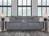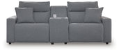 Details Includes 3 modular pieces: left-arm facing power recliner, console and right-arm facing power recliner, "Left-arm" and "right-arm" describe the position of the arm when you face the piece, Versatile modular pieces fit together in a variety of configurations, One-touch power control with adjustable positions, Easy View™ adjustable headrest and zero-draw USB port, Zero-draw technology only consumes power when the USB receptacle is in use, Corner-blocked frame with metal reinforced seat, Attached back and seat cushions; high-quality foam cushions wrapped in poly fiber, Polyester upholstery; Next-Gen Nuvella™ is a family-friendly fabric that is soft, easy to clean, stain-resistant and durable, Clean fabric with mild soap and water, let air dry; for stubborn stains, use a solution of 4 oz. bleach to 28 oz. water, Throw pillows with easy-to-remove zippered covers for machine washing; pillows with soft polyfill, Console with plexiglass top and 2 cup holders, Zero wall recliner design requires minimal space between wall and chair back, Power cord included; UL Listed
