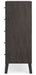 Details Made with engineered wood (MDF/particleboard/plywood) and decorative laminate for the right balance of affordability and durability, Two-toned with dark charcoal finish over replicated oak grain and a replicated sugarberry wood grain, 5 smooth-gliding drawers with vinyl-wrapped sides and back, Matte black knobs, Splay legs, Safety is a top priority, clothing storage units are designed to meet the most current standard for stability, ASTM F 2057 (ASTM International), Drawers extend out to accommodate maximum access while maintaining safety, Assembly required