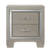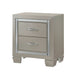 The Platinum Youth Nightstand is sure to delight your glamour queen. This nightstand has a mirror glass trim and comes in a chic champagne finish. Two drawers for storage complete this nightstand.