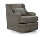 Need a place to sit and relax that will blend well with almost any home decor? You have come to the right place. The Reagan swivel gliding chair features a sloped arm, T-cushion seat, simple welted front rail, and kidney pillow. This transitional silhouette is not only stylish, but comfortable too! Make it as bold or understated as you wish with your fabric selection.