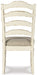 Bon appétit. With its rounded ladderback styling, chipped white finish and plushly cushioned seat, the Realyn dining room chair has all the right ingredients for a French country-inspired feast for the eyes.