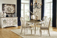 | Details | Made with wood and engineered wood, Distressed, chipped white finish, Stylized ribbon back design, Polyester upholstery over foam cushioned seat, Assembly required | |