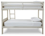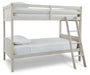 | Details | Includes twin bunk bed panels and twin ladder/rails/slats, Made with hardwood solids, birch veneer and MDF substrate, Antiqued white finish with grain texture, Top bunk with protective side rails, Sturdy ladder leads to top bunk, The Consumer Product Safety Commission states top bunks not be used for children under 6 years of age, Bed does not require additional foundation/box spring; accommodates most zero clearance adjustable bases, Mattresses available, sold separately?, Assembly required | |
