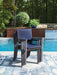 Bring casually cool style outdoors with this sling arm chair. Sturdy aluminum construction and a goes-with-anything gray finish make it the perfect patio or porch companion. A comfortably padded sling seating area in a beautiful blue hue completes the look.