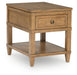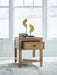 Taking a timeless approach to casual beauty, this end table brings easygoing elegance to the everyday. The light brown wood-tone finish seamlessly slips into your room’s aesthetic. A dark bronze-tone pull accents the drawer, adding to the table's fresh approach to transitional stylings. And built-in USB charging makes scrolling while lounging on the sofa that much more convenient.