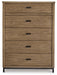 | Details | Made with hardwood solids, mango wood veneer, MDF substrates and metal, Light brown wood-tone finish, Gunmetal gray finish on metal legs, Metal bar pulls, 5 drawers with fully finished interior, dovetail construction and heavy duty ball-bearing side glides (top drawer felt lined) | |