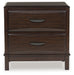 A rich, metropolitan finish. Unbeatable function. With this nightstand, it’s a breeze to create a casual contemporary hideaway full of style and convenience. It combines thoughtful craftsmanship and handy storage, with smooth-gliding drawers to help keep bedside essentials organized. Metal bar pulls complete the look with added flair.