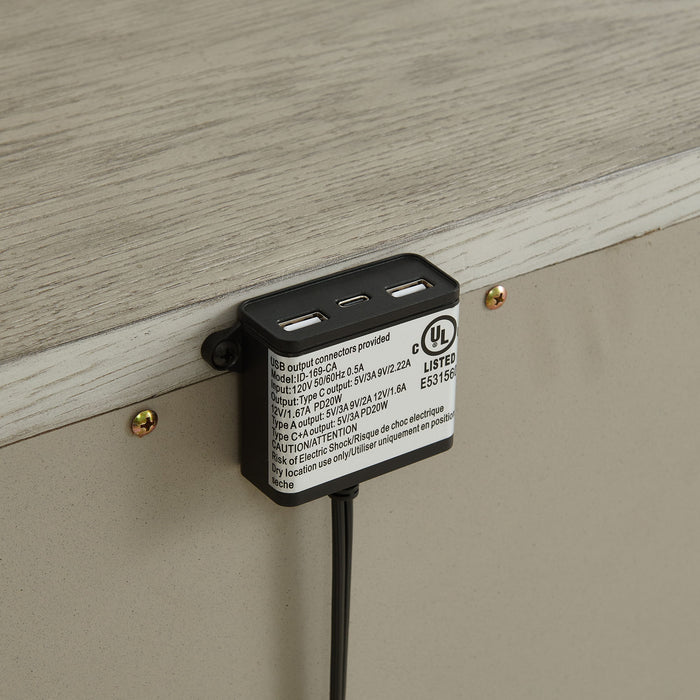 Add a touch of timeless elegance to your bedroom with the Whit-Ash Bedroom Set with Door Chest. The stunning bed features a high-profile panel headboard with beveled edges, giving it a classic and sophisticated look. The tappered bun foot adds a touch of charm, while the panel in panel design adds depth and visual interest. This nightstand features a convenient USB port for charging your devices, as well as a felt lining in the top drawer of the nightstand. The door chest includes a sliding door opening to shelving for extra storage. The hardware adds a timeless touch, while the dust proofing bottom layer ensures your belongings stay clean and organized. The complements a variety of decor styles and color schemes. Upgrade your sleeping space with the Whit-Ash Bedroom Set with Door Chest today.