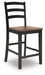 This counter height bar stool dresses up your favorite farmhouse motifs with modern flair. A contoured butcher-block style seat keeps you comfortable and provides a ruggedly chic contrast to the sleek black frame.